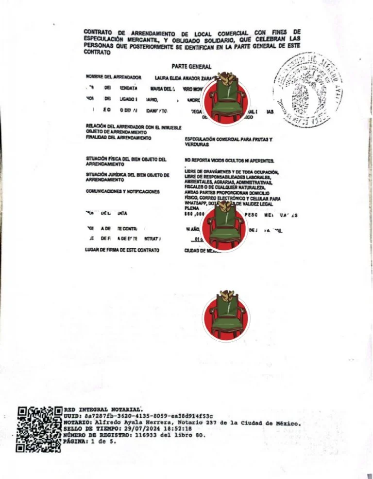 De acuerdo con documentos en poder de La Silla Rota, en junio de 2024 la mujer firmó un contrato con un comerciante para arrendar los espacios U-37 y U-39, a pesar de que estos inmuebles están destinados a productores veracruzanos y debían usarse de forma gratuita. El contrato fue avalado por un notario de la Ciudad de México y representó ingresos por más de 1.4 millones de pesos que nunca entraron a las arcas estatales.